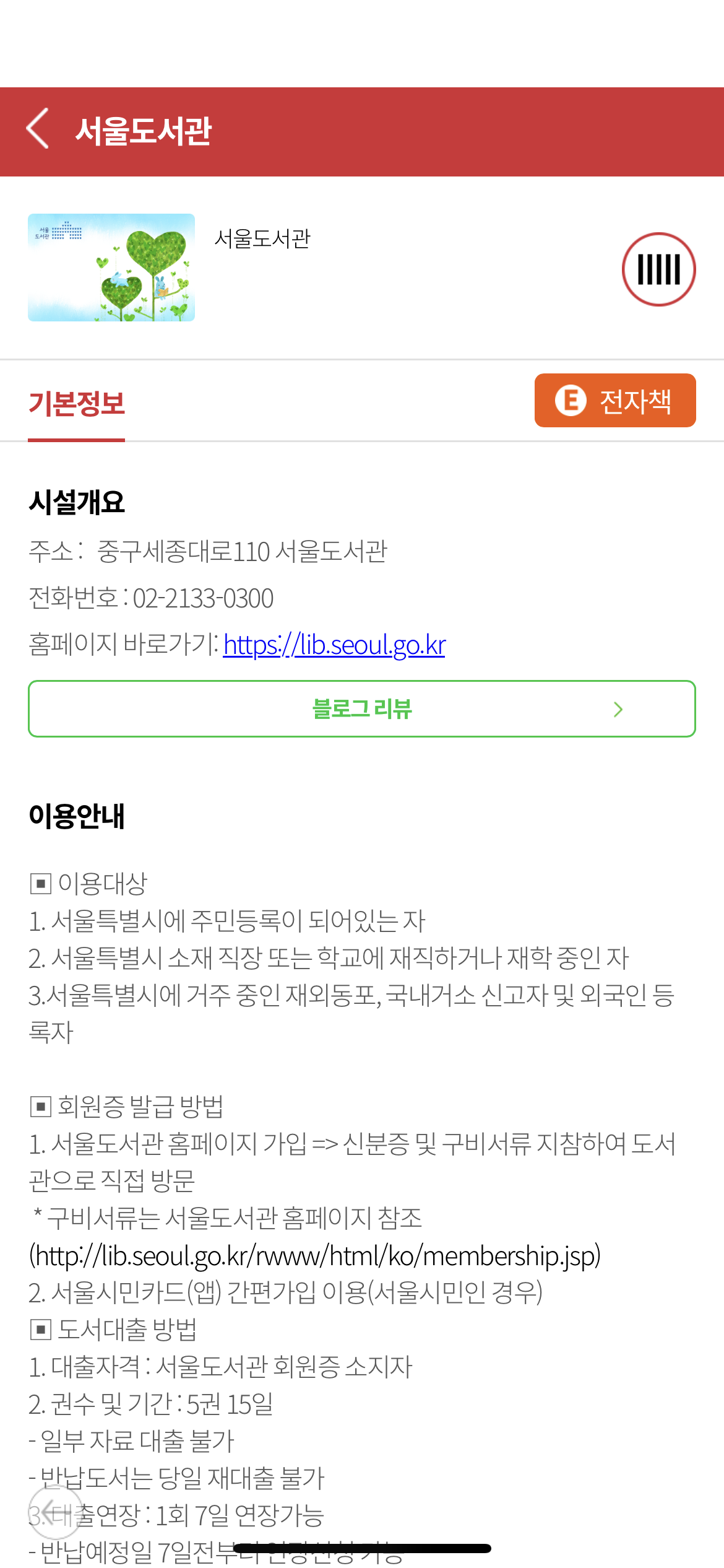 | 서울도서관 | https://lib.seoul.go.kr | 12,000여종 | 3~5권/15일 | 02-2024-9999 |