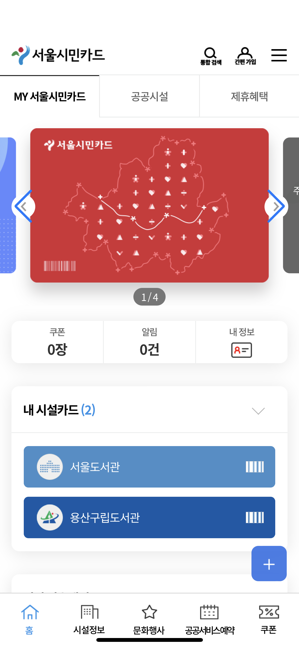 서울시의 공공시설 이용에 필요한 회원카드를 통합한 모바일 카드