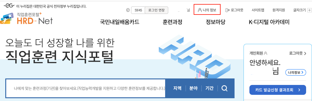 2) 로그인(회원가입) 후 사이트 상단에 있는 [나의정보]로 이동합니다.