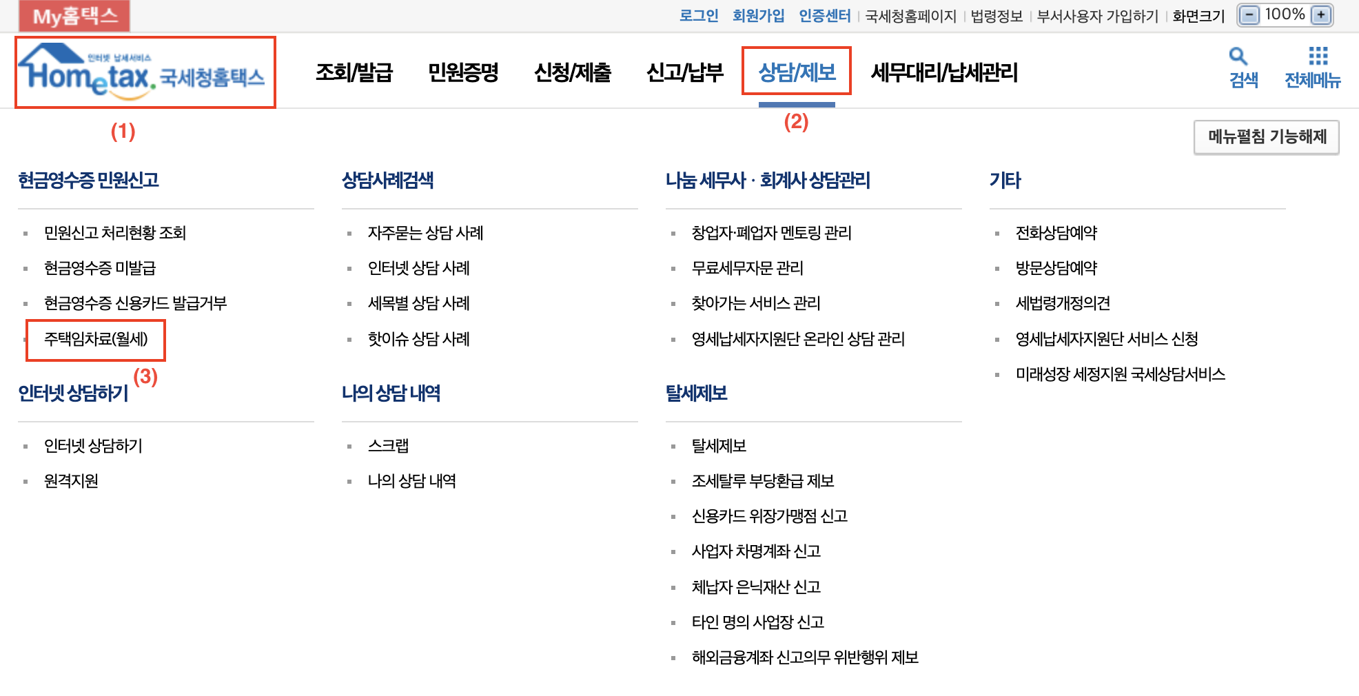 임대인이 사업자가 아닌 이상 현금영수증을 끊어줄 수 없기 때문에 아래의 방법으로 임차인이 신청할 수 있습니다.