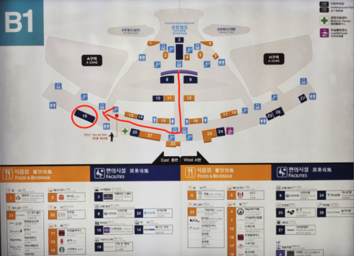 - 1 터미널 탑승동 지하 1층 19번(지도 참고)에 스파온에어의 한편에 있습니다.