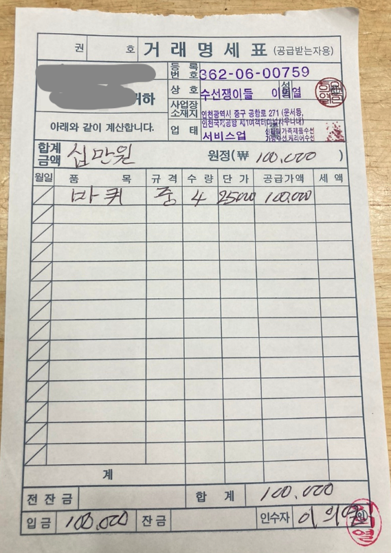 - 청구서, 출입국 관련서류(여권사진 + 도장, 출입국사실증명서), 피해품내역서